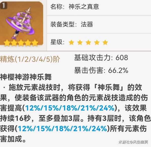 直接加强元素伤和反应伤的武器,对圣遗物副词条的双爆有一定的要求,因为草神突破不加双爆,专武也不加,所以对圣遗物稍微有点要求也正常。