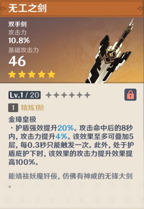作为限定五星大剑,无工跟狼末十分相似,都是提供大量攻击,但无工需要搭配护盾角色才能发挥祂的长处,圣遗物推荐与狼末一致,配队上有提供护盾的角色时优先级比狼末要高。