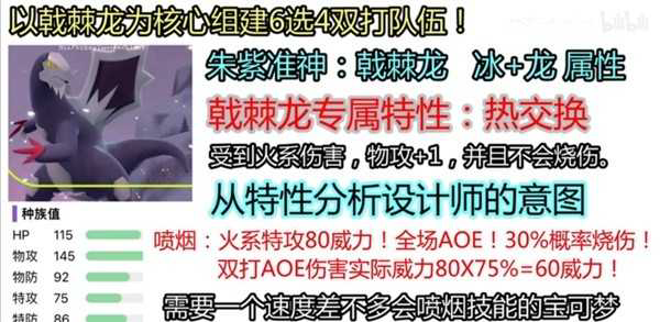 《宝可梦朱紫》戟棘龙具有热交换的专属属性,可以和有喷烟技能的宝可梦组成非常强的队伍,下面请看玩家“龙系大叔ming”带来的《宝可梦朱紫》戟棘龙6选4双打配队推荐,一起看看吧。