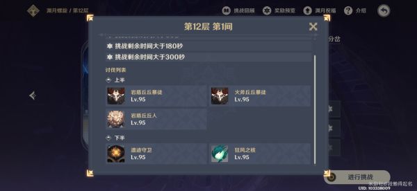 2.我配的队伍只是基础版的,主要是保证拿到6星,满星的话需要你专门刷皇女的装备,还需要一个班尼特来配合,不过有班尼特可以把芭芭拉下了,12-3的岩盾带个大剑就能破。