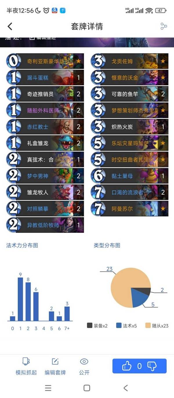 就当铺场快攻打,不用奢求开门。先手起手留1费随从,船医,礼盒雏龙等。后手可以考虑硬币跳2费的养小嘲讽龙随从,3费奶酪龙,奶酪龙给的2费招3注意不必在手里憋着升级,铺的慢或者对面没什么解牌上,对面解了一波没场面了上,梦中男神前期随从多时候下,基本就这局稳了。拖到中期可以开门斩杀,泰坦过墙,沃金换身材,姐夫看情况找直伤咆哮或者aoe,快开门的时候可以手里留一些能打伤害的随从,0费的嘲讽啊之类的,尽量不要搞后期,拖到后期基本赢不了。