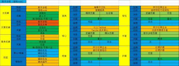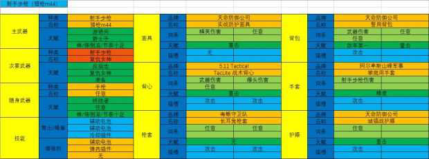 1、背心武器伤为12%,背心爆头伤为10%,手套武器伤为10%,背包武器伤为9%,攻击系统·枪械统一为1%武器伤+5%射手步枪伤(共6%)。