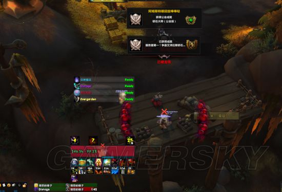 左右两条路都可以走,血誓污染者不吃破胆,但吃吹风,迎头痛击CD时可以用吹风打断技能。图腾出来可以用裂伤和月火打掉,也可以拉开即可避免图腾伤害。