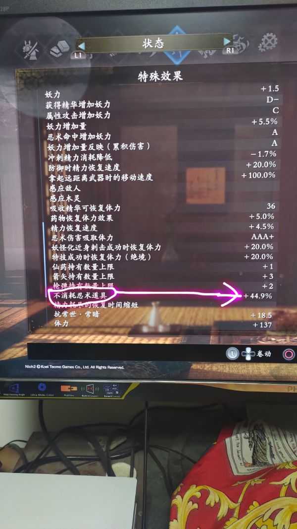 高能的来了,集齐6件后,可以让其他所有武器附带视忍术术力增伤A,比B还高。意味着,你可以用任意武器享受高幅度增伤玩忍术流,就是这个意思,