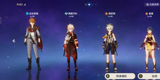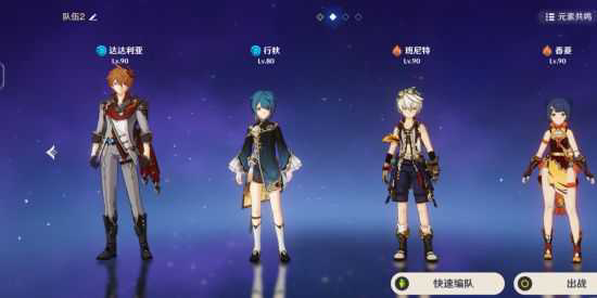 这是主流的配队,除了没有护盾和充能不足,可能是原神最和谐的配队。