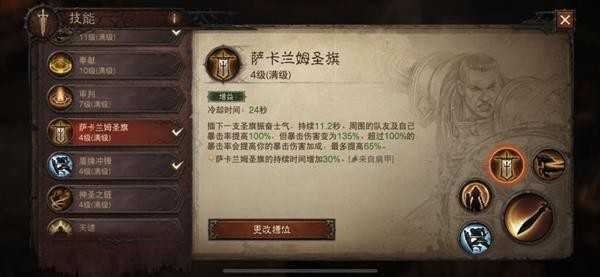 肩膀用的30%圣旗是因为没有扛旗肩,对Boss技能熟悉之后能把旗子插到相对安全的位置30%时长收益更高,混乱环境下也可以先下范围无敌再下战旗,也能保证至少5秒的双倍伤害。