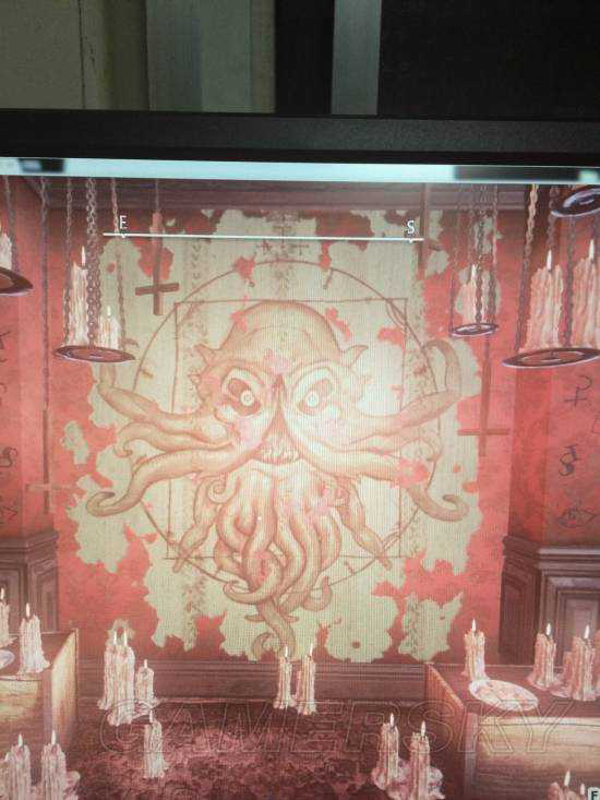 没错,这就是旧日中最有名的克苏鲁。作为一点佐证,屋子里还有大量的盘子上摆着烤鱿鱼。
