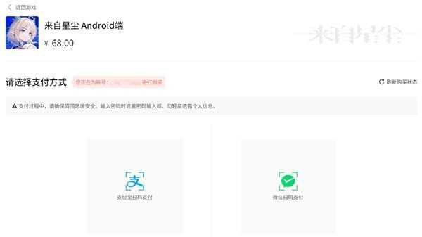 以安卓为例,进入购买页面,选择支付方式支付便可,游戏价格68元。