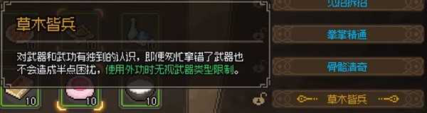 其次好用的是草木皆兵,不管拿到什么武器以上就能用,并且战斗中可以用不同的武功,不受限制。