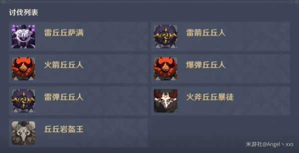 极限:初始敌人为5只,雷斧丘丘暴徒+2雷箭+2雷弹,击败小怪刷新雷萨满,雷斧单独刷新。