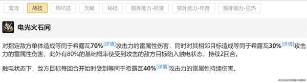 希露瓦的战技可以按70%的基础概率挂触电,持续2回合,终结技可以把触电延长2回合。