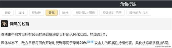 桑博的所有攻击,均有65%的基础概率对敌方造成风化,持续3回合。