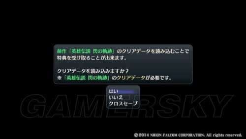 2013年9月26日发售的「英雄传说 闪之轨迹」、2014年6月26日发售的「英雄传说 闪之轨迹 Super Price版」、亚洲发售中的韩语版・中文版的通关存档,都可以在本作「英雄传说 闪之轨迹II」继承。