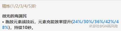 Ⅲ.莫娜:莫娜主流玩法主要依靠元素爆发增伤打核爆和挂水打永冻,对充能的需求不大不小,可以使用