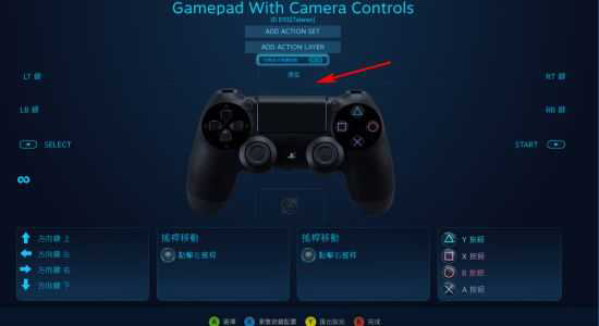 以《鬼泣5》为例,要把整块触控板改成挑衅,就把图中箭号部分点一下再把它定义成BACK键就行了。