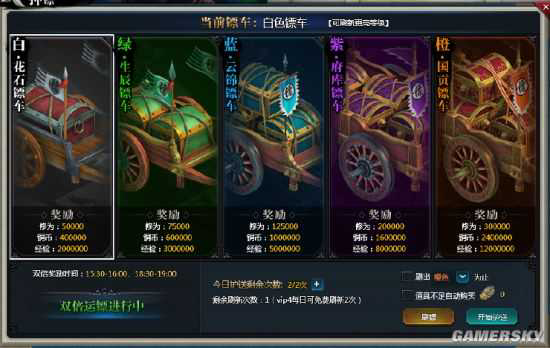 3)护送美人共有5个品质,分为白、绿、蓝、紫、橙色的镖车