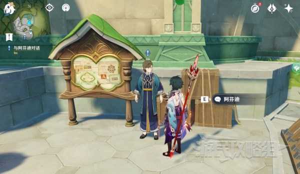 在完成魔神任务「第三章第二幕」后会自动接取任务「三十人团的招募」。前往目标位置与阿芬迪交谈。