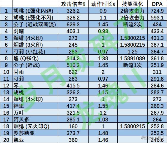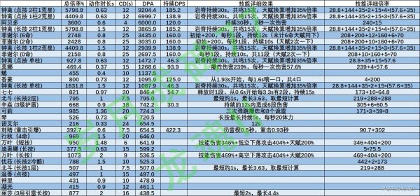 《原神》中而DPA强调的是以动作为节点,强调单位动作和单位时间内的伤害效率,通过优化动作以实现输出和爆发效率最大化的函数。那么现在为大家带来“龙魂II”分享的《原神》全角色技能动作时长与DPA倍率一览,希望对大家有所帮助。