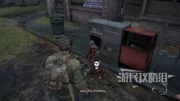 离开建筑来到外边,扒开木板后进入下一栋建筑。离开这栋建筑后穿过一条小巷,出来时注意左边的树,火萤挂坠就在树枝上,用枪把它打下来。
