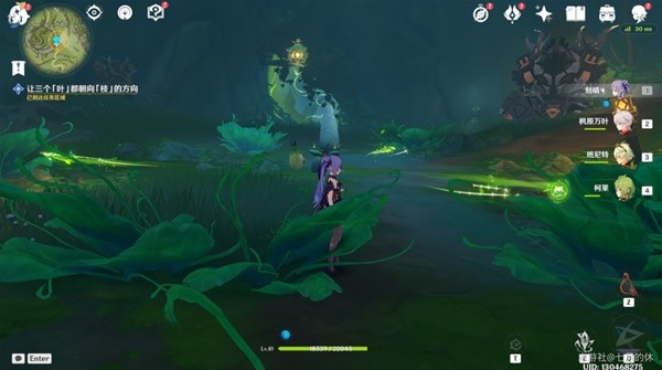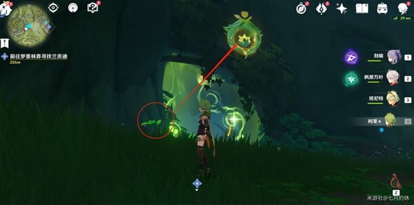 3.击败树上的蕈兽(0/2),用草元素攻击众叶觉蕊,借助四叶印过去即可。