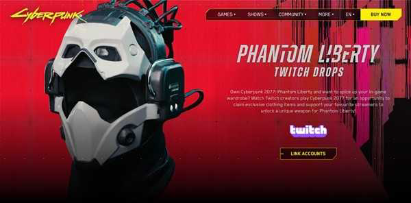 打开twitch,右上角个人头像,选择掉宝与奖励,所有活动,可以在已开启的奖励活动里看到夜叉狙击步枪,会弹出下拉栏,关于此奖励,会跳转到2077往日之影的twitch宣传界面,如图: