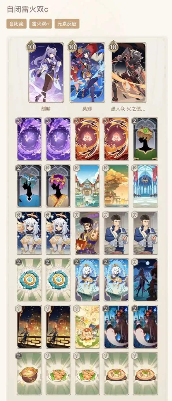《原神》这套卡组依靠元素反应以及天赋带来的增伤,泛用性非常高,下面请看玩家“游戏百晓生”带来的《原神》七圣召唤雷火双C流卡组搭配攻略,一起看看吧。