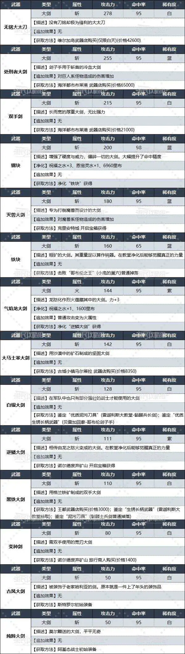注意事项:本文中的部分武器类型/适用原型/获取方法可能会涉及剧透,请酌情阅读;其他类型武器数据图鉴及获取方法请参考这篇攻略。