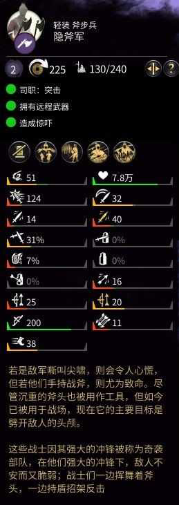 地形适性、疲劳抗性让其来去如风,抵抗冲锋和免疫恐惧令其骁勇善战。
