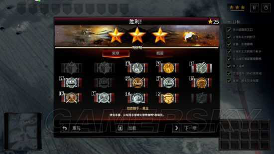 直接突袭到桥边,注意,士兵分布在坦克两侧,攻击模式选择右键,而不是A,坦克可以移动射击,之后步兵清理下方阵地外围的敌人。然后一个坦克带1-2个小兵突击,之后修桥,用手榴弹炸了岸防炮,之后突破战壕,再炸了岸防炮一个,之后就可以突击到敌人后方,配合手榴弹,敌人轻型坦克根本无压力,各种抢大炮中间村庄打不打随意,如果分数不够了,就是不够三星,可以把中间村庄打了,有一个补给站可以补给弹药,记住挑战模式一定要打到三星,否则算挑战失败。