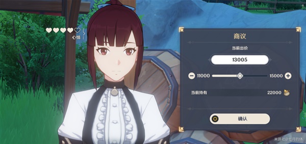 注意:可以砍价,但是npc的心情值(爱心)没了,就没有折扣了!这里楼主保守出价到1.3w摩拉!