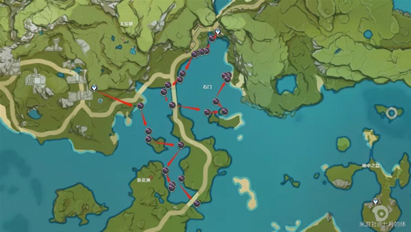 每样只能卖5个,最多获得9800摩拉,其他的都很常见,落落梅和钩钩果给大家标记了路线。
