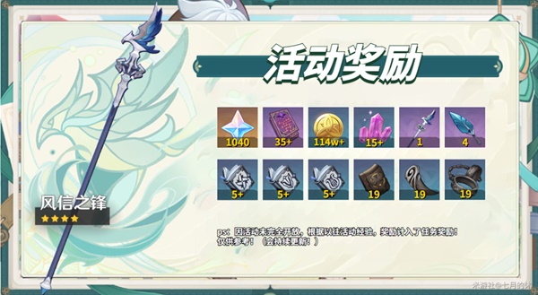 6、完成各个玩法,可获得「节庆热度」,节庆热度达到指定值可获得活动专属武器「长柄武器·风信之锋」(绝版!)及其精炼材料。