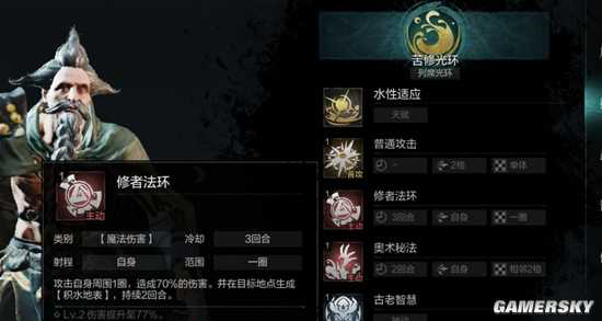 如图,水元素和祝福与诅咒分别会结合为祝福之水与诅咒之水带来不同的增益。普金水法,只能产生一轮效果。但水老头二技能能产生两(拉满三回合)回合的水地,也就是说产生两(三)回合的祝福之水。对我方角色能带来70%的回血。拉满二技能挂水能挂三回合,配合下面技能基本上能永动挂水。