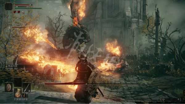 原则上还是多利用盾牌来防御他的招式。另外就是利用战技或魔法来输出快速削减他的血量。击败他后会获得道具【护符皮袋】。