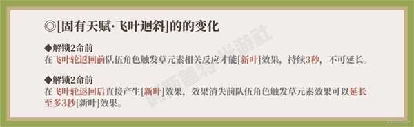 【1】固有天赋1·飞叶迴斜(2命以下效果)