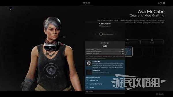 裂神者属性:伤害38、暴击几率2%、弱点伤害+50%、硬直改装-20%