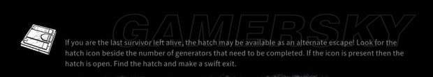 如果你是最后的生还者,那么地窖将会打开!你将能够通过地窖直接逃脱,地窖出现的条件为成功修复当前存活人数+1台发电机(以四人局为例),也就是说当剩下你最后一人时,必须成功修复两台发电机后地窖才会出现。地窖出现的时候为关闭状态,当地窖打开的时候会有金属盖子弹开的声音,并且会有唔唔唔的风声吹入密闭空间的声音,萌新可以注意听。