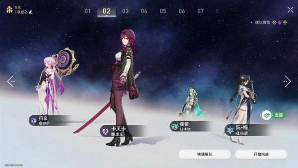 配队参考:卡芙卡、符玄、藿藿、阮·梅。(没卡芙卡也不打紧,可以多加一个盾奶角色,顶多出伤速度会慢一些)