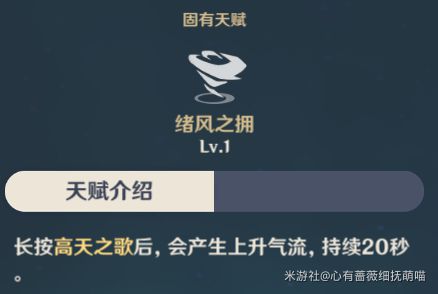 在长按元素战技高天之歌后,会产生持续20秒的风场,风场自长按cd开始计时时产生。