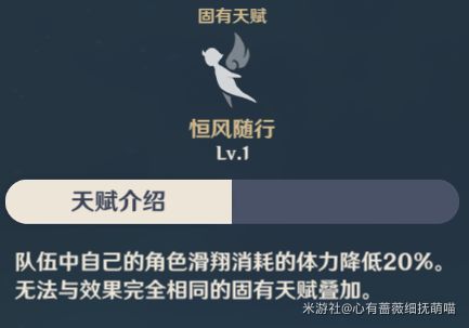 安柏同款天赋,两者无法叠加,联机时仅对自己的角色生效,无法共享给对友,可以和风神杂烩菜叠加。
