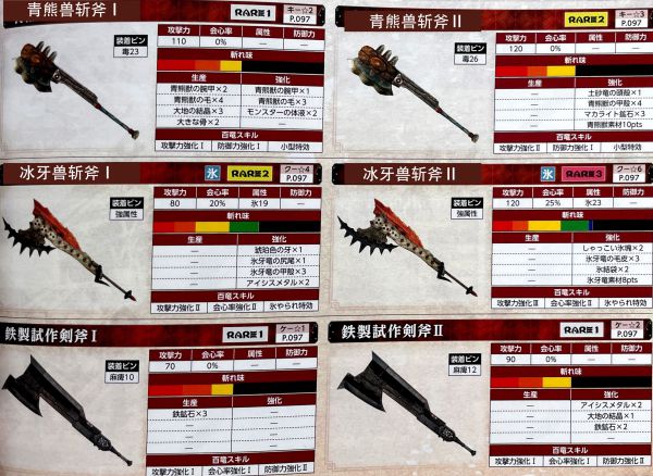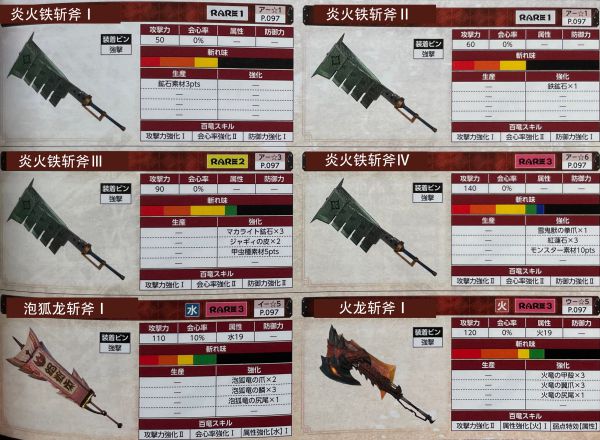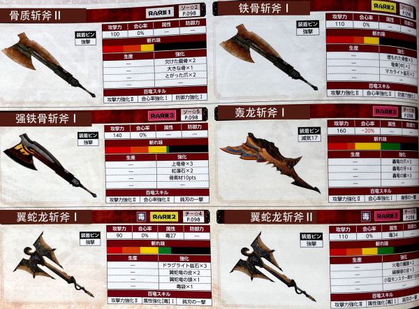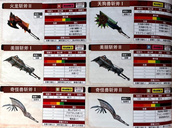 《怪物猎人崛起》玩家可以使用材料强化或制造武器,可能有一些玩家不太清楚本作斩斧都有哪些衍生武器可以制造,下面请看玩家“正义伙伴熊大”分享的《怪物猎人崛起》斩斧衍生武器一览,希望能为各位玩家带来一些帮助。