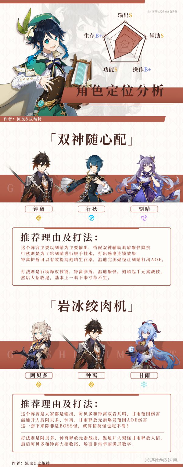 两个阵容都是平时喜欢玩的,双神组合可以适合任何角色,带个C 带个脱手工具人,奶妈甚至都不需要带,依靠钟离的护盾和温迪的聚怪,基本上不会掉血。