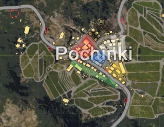 跳法,我们一般都是跳在黄色区域,这里一般跳的队伍不多,而且炮台位置刷车,后面街道也刷车,人实在太多方便撤退,在决定攻打p城的情况下,黄色区域的枪械一般也比较丰富,如果中间人多,也可以转移到街对面或者橘房,不容易被人家形成夹击,如果枪械多,中间人不多,可以先清空中间的敌人,这样可以占领房顶,一旦占领p城房顶,对大房子,橘房,村长家楼下都是有很好的射击视野和观察。