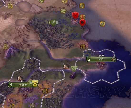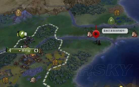 首先我偶然间发现了一个蛮族侦察兵,为了验证蛮族的出兵机制我故意放过了他让他靠近我的城市。1号档更新之后蛮族侦察兵发现城市之后头上会出现一个红色感叹号示警,很明显吧?
