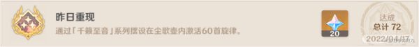当旅行者解锁了10/30/60首音乐后,会提示获得成就「昨日重现」。