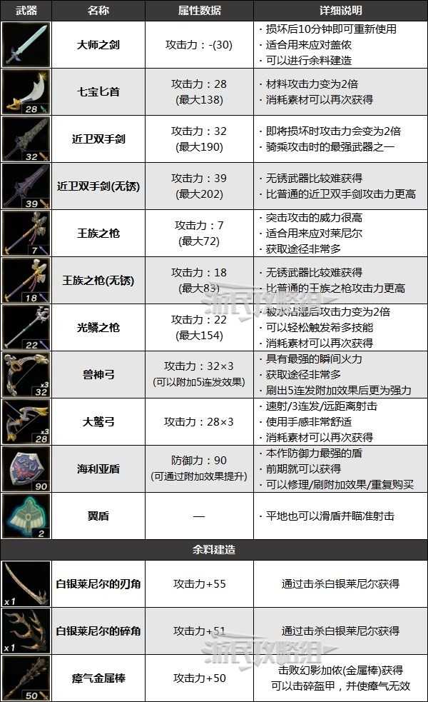 大师之剑是塞尔达传说系列不言而喻的最强之剑,另外,如果搭配新能力余料建造的话能够再次提升它的能力。大师之剑具有耐久值,但在损坏后等待10分钟即可再次使用。