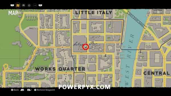 ②自由模式的出生点位于地图上“Little Italy”区域中的萨列里酒吧,上到酒吧的二楼,可以在小地图上看到一个白色标记——衣柜。