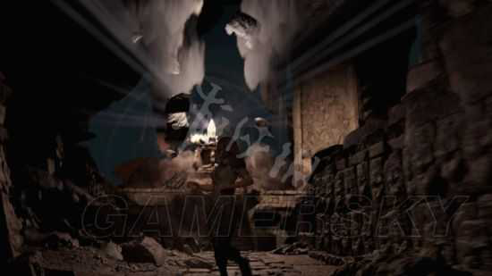 向右侧的有白光提示石壁前进按照提示爬上去(最高难度下无提示哦☆)