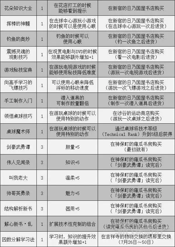 《女神异闻录5皇家版》中书籍可以为玩家带来属性加成与许多特殊效果,想知道各个书籍应该怎么获得的玩家请看下方为大家带来的《女神异闻录5皇家版》书籍获取攻略,相信能为大家提供帮助。