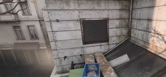 在花园爬上梯子之后,无人机被摧毁,我们走到阳台尽头,向左边翻出阳台。